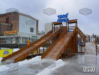 Большая трехскатная деревянная горка. Скаты 15,12 и 4 м (ширина каждого 2,0 м)
