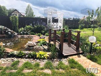 Декоративные мостики просто созданы для участков, чьи хозяева не лишены романтики и мечтательности. Сколько разных событий, по большей части, конечно, любовных, разворачивалось на простом, на первый взгляд, мостике. Этот декоративный деревянный элемент притягивает взгляд, к нему хочется подойти и помечтать, облокотившись на его поручни и вглядываясь вдаль.