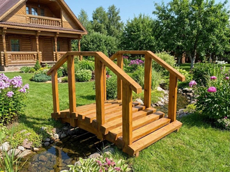Элемент декорации красивого сада – мостик декоративный из дерева. Его появление на участке заметно преображает пространство. Обычно деревянный мостик из дощечек ставится для эффектного облагораживания небольшого водоема, но в то же время он может ставиться и отдельно от воды. В любом случае купить мостик деревянный для собственной загородной обители – будет отличным решением ландшафтного дизайна.