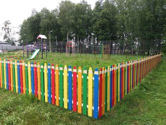 Садик или детская игровая площадка – это то место, которое обязательно должно вызывать детскую улыбку. Оградив территорию забором из карандашей, деткам будет приятно в нем находится, тем более детская зона будет настоящим украшением и гордостью. Всё лучшее, как говорится, детям! Впрочем такой забор из карандашей будет уместен и на даче и в любом другом месте, которое хочется приукрасить и сделать сказочно-красивым.