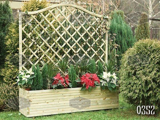 Создать эффектное место в саду можно с помощью доступного решения – поставить в любом выбранном месте деревянное кашпо с аркой и шпалерой, разместив внутри него горшки с любимыми цветами. Стена из шпалеры служит опорой для растений, нуждающимся в поддержке. Таким образом, это изделие и полезное, и красивое. Кашпо со шпалерной решеткой имеет достаточно большие размеры, чтобы разместить внутри не одно, а несколько горшечных растений, которые будут радовать весь теплый период года.