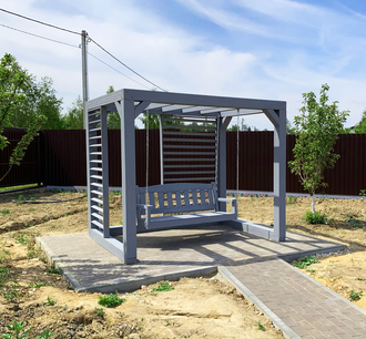 | Размеры | качели: 2,70 х 2,00 х 2,30 м (ДШВ) диван: 1,80 х 0,65 х 0,65 м (ДШВ) горизонтальная решетка по ширине 1,20 м. горизонтальная решетка по длине 1,70 м. |