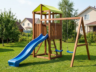 Детская площадка ГЛОРИЯ представляет собой игровой домик с крышей, с которой можно спуститься по пластиковой горке. Кроме того, для ребенка будет интересен скалодром, который развивает физическую выносливость, заставляет думать над последующими шагами. Так что, игры на такой детской площадке не только увлекательны, но и полезны. Использование как деревянных, так и пластиковых элементов, дает возможность играть ребенку и в холодное, и теплое время года. Для того чтобы купить детскую площадку с качелями, горкой и скалодромом, достаточно оформить заявку через сайт или позвонить нам по указанным телефонам.