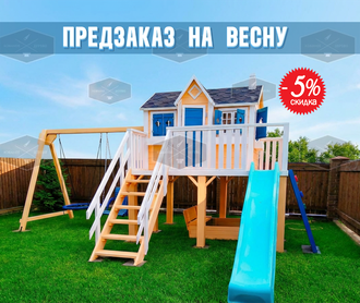 Детский домик "Большая Мечта" (аксессуары: скалодром, горка, гнездо, сидение)