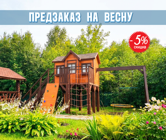 Детский домик "Мечта". Вариант № 5 (скалодром, сетка, гнездо, оргстекла)