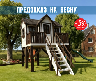 Потрясающе продуманный домик является прототипом модели детского домика "Мечта" арт. 0721. Домик возвели на мощные опоры из бруса 140х140. Благодаря возможности сочетания двух цветов, изделие выглядит безупречно красивым. Безусловно, такая модель нравится прежде всего родителям, поскольку во многом имитирует взрослую постройку по стилю исполнения. Внутрь дома можно попасть, поднявшись по безопасной лестнице, при желании можно поиграть на веранде или внутри, расположившись на лавочках. Крыша покрыта мягкой кровлей. Детский домик на ножках полностью безопасен для использования одним или несколькими детьми одновременно.