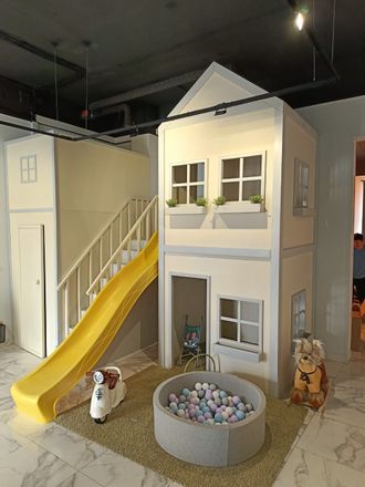 Домик ЛОФТ с горкой для игровой комнаты