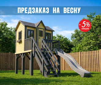 Настоящая Мечта! Качественный игровой домик для детей разных возрастов с пластиковой горкой трехметровой длины. Внутри достаточно места для долгих игр нескольким детям, которым вместе будет не тесно, а интересно. Внешне детский домик выглядит как настоящее взрослое строение уменьшенных форм, что еще более завораживает! Маленький хозяин может принимать внутри гостей, раскладывать игрушки, заниматься разнообразнейшим досугом на радость своим родителям. Да и представьте себе какая гордость иметь на участке такое внушительное, красивое, стильное строение - детский игровой комплекс с домиком и горкой!