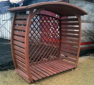 Для сохранения дров в пригодном для топки виде желательно купить дровник, в котором запас нужного для дачи топлива не будет намокать и подвергаться влажности. Данная модель дровника отличается интересным внешним видом, к тому же она полностью справляется возложенной на неё обязанностью - организовывать пространство и сохранение поленьев.
