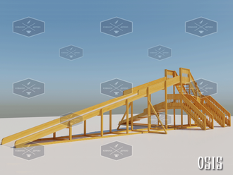 | Размеры | Общая длина горки по грунту 20,0 м., Высота общая 5,0 м., Ширина общая 9,0 м. Скаты горки 15,0 м и 6,0 м. Ширина общая каждого ската 1,31 м. Высота бортов малого ската: 0,45 м. - 0,30 м. Высота бортов большого ската: 0,60-0,30 м. Высота до первой горки 1,80 м. Высота до второй горки 3,80 м. Площадки 1,50 м. х 1,50 м. Перила на площадке 1,2 м. |