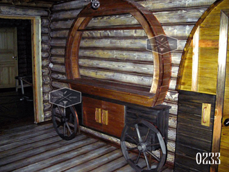 Обустройство ресторана, ярмарки или любого другого места или мероприятия, которое впоследствии будет посещать много людей, является интересной, но в то же время сложной задачей. Хочется сделать нечто запоминающееся и необычное, например, не просто прилавок, а стилизованный под старину. Перед вашими глазами имитация телеги, представляющая собой прилавок, приставленный к стене. У телеги-прилавка два колеса, обод, рабочая поверхность. Более того, данный прилавок-телега является еще и импровизированным шкафчиком с открывающимися дверцами. Данная телега может использоваться для ярмарки в качестве место для реализации ярмарочных товаров.