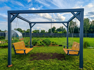 Дача - это место для отдыха и умиротворения, где важна каждая деталь. Конструкция из клееного бруса с двумя подвесными диванами станет уютным и стильным дополнением к вашему отдыху на свежем воздухе.