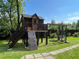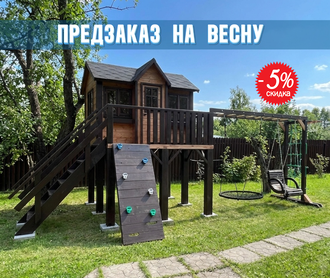 | Комплектация | горка пластиковая 300 см, скалодром, модуль с рукоходом и сеткой, гнездо 100 см, деревянное сидение, оргстекла |
