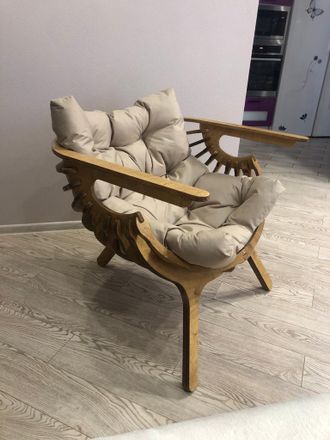 Параметрическое кресло Ракушка идеально впишется в любую обстановку. Его можно поставить на террасу загородного дома или обставить летнюю зону ресторана. Везде кресло из фанеры такой причудливой формы будет кстати.
