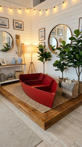 Декоративная лодка из фанеры - это эффектный арт‑объект и готовый центр притяжения в любом пространстве, где важны атмосфера, стиль и эмоции. Такая интерьерная лодка мгновенно задаёт «морское» настроение: ассоциации с путешествиями, тёплым побережьем, уютными вечерами с гирляндами и натуральными фактурами. Яркий цвет делает изделие заметным акцентом, поэтому лодка для интерьера отлично работает как самостоятельный декор - её не нужно «усложнять» множеством деталей: достаточно добавить рядом плед, корзины из натуральных материалов, зелёные растения или несколько тематических элементов в стиле coastal/nautical, и композиция выглядит завершённой.
