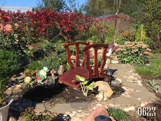 Садовый мостик из дерева небольших размеров эффектно разбавит композицию из сухого ручья и живых цветов. Мостик будет дополнять красочную картину, являясь как будто переправой через маленький искусственный прудик. Купить мостик небольших размеров по представленным габаритам или с внесением необходимых корректировок можно, обратившись к нам любым удобным для вас способом.
