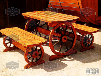 Деревянная мебель с колесами от телеги - это комплект, который способен удивить каждого! Он как будто бы возвращает нас в прошлое, где остались лошади, запряженные в телеги. И самой что ни на есть главной характерной деталью старины являются деревянные колеса. Их сейчас достаточно часто можно встретить в ландшафтном дизайне. А вот комплект мебели, состоящий из лавки с колесами и стола с колесами, вы вряд ли, где увидите.