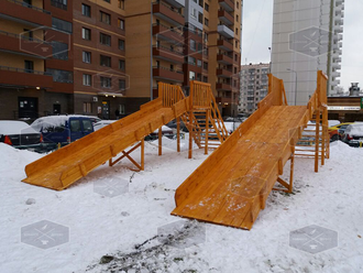 Широкая деревянная горка под тюбинг. Скат 6 метров. Модель № 01