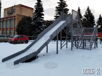 | Размеры | Общая длина 11 м., общая ширина 3,00 м., общая высота 4,0 м., длина ската 8,0 м., ширина ската 1,50 м., высота бортов ската 0,45 - 0,30 м., размеры площадки 1,00 х 1,50 м., высота перил на площадке 1,0 м. |